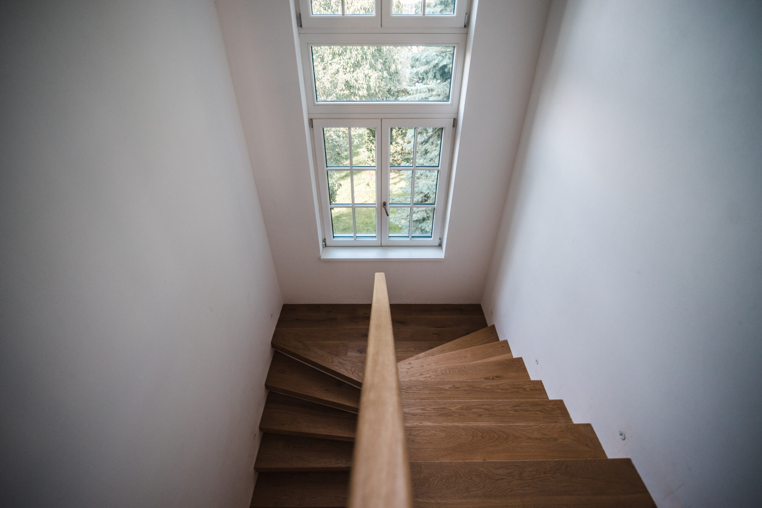 V prvním nadzemním podlaží je společenská zóna s obývacím pokojem, kuchyní, pracovnou a zázemím při vstupu. Druhé nadzemní podlaží slouží jako obytná – klidová zóna domu. Podkroví je řešeno jako pobytové, předpokládané využití je dětská herna, případně do budoucna kancelářský prostor. Podkrovní prostor je nedělený a otevřený po přiznanou nosnou konstrukci krokví.